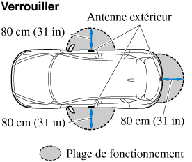 Le système risque de ne pas fonctionner à proximité immédiate des fenêtres ou des poignées de portières ou du hayon.