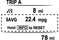 La consommation moyenne de carburant est calculée toutes les minutes à partir de la distance totale parcourue sur le compteur journalier et la consommation totale de carburant, et l'économie moyenne de carburant est affichée soit pour le TRIP A, soit pour le TRIP B.