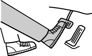 Porter des chaussures appropriées pour conduire afin d'éviter que votre chaussure touche la pédale de frein lorsque vous appuyez sur la pédale d'accélérateur.