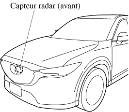 Si la partie frontale du véhicule a été endommagée lors d'un accident de circulation, la position du capteur radar (avant) peut s'être modifiée. Arrêter le système immédiatement et toujours faire inspecter le véhicule par un concessionnaire agréé Mazda.