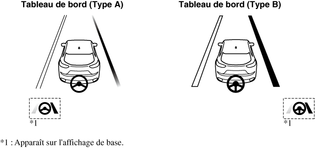 Si la fonction d'assistance à la direction ne peut pas maintenir le véhicule dans les lignes de circulation pendant que la fonction d'assistance à la direction est en marche, un avertissement sonore retentit et un avertissement apparaît sur l'affichage multi-informations pour inciter le conducteur à actionner le volant.