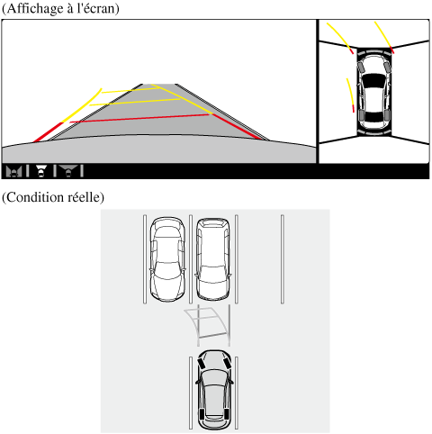 Pour plus de détails, se référer à l’avertissement sonore et à l'indication de détection d'obstruction du capteur de stationnement.