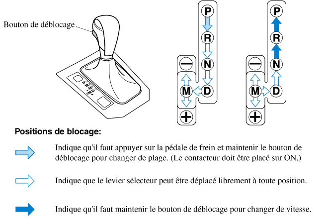 La Sport AT possède une option que ne possède pas la boîte de vitesses automatique traditionnelle qui donne au conducteur l'option de pouvoir choisir lui-même chaque rapport au lieu de laisser entièrement le choix du changement de vitesses à la boîte de vitesses. Même si l'on a l'intention d'utiliser les fonctions de boîte de vitesses automatique comme boîte automatique traditionnelle, il faut aussi bien être conscient que l'on peut passer par mégarde en mode de changement de vitesses manuel et qu'un rapport inadéquat pourra alors être conservé lorsque la vitesse du véhicule augmente. Si l'on remarque que le régime du moteur augmente ou que le moteur s'emballe, vérifier si l'on n'est pas passé par mégarde en mode de sélection manuelle des rapports (Rechercher).
