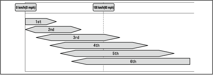 Pour chaque position de rapport en mode manuel, la limite de vitesse est définie comme suit: Le rapport change lorsque le levier sélecteur est actionné dans la plage de la limite de vitesse.