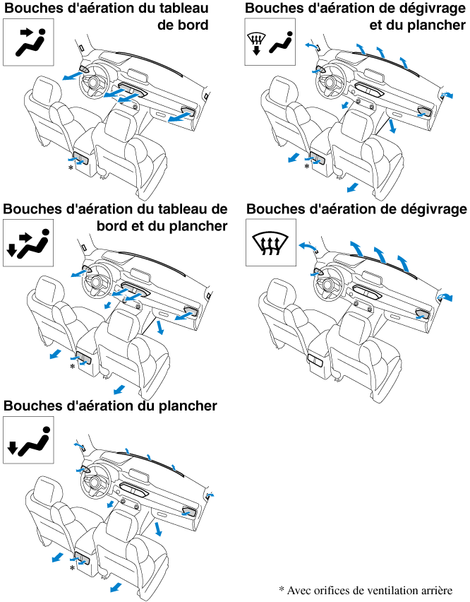 Le mode de circulation d'air évacue l’air par les bouches d'aération et le volume d’air peut changer selon l’état d'ouverture/fermeture des bouches d'aération.