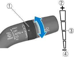 Mettre le levier sur la position intermittente et tourner l’interrupteur pour sélectionner la durée de l'intervalle.