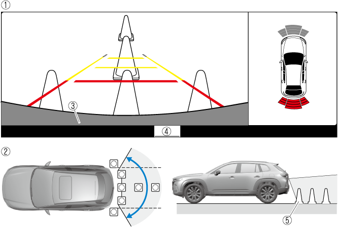 Le champ de vision est limité. Les objets sous le pare-chocs ou près des extrémités du pare-chocs ne peuvent pas être affichés.
