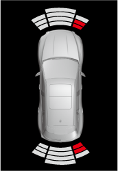 Les capteurs de stationnement sont des capteurs ultrasoniques servant à repérer les obstacles autour du véhicule lorsque celui-ci roule à basse vitesse, comme par exemple en entrant dans un garage ou lors d'un stationnement en créneau. Un vibreur et un indicateur de détection notifient le conducteur de la distance approximative entre le véhicule et l'obstacle proche.