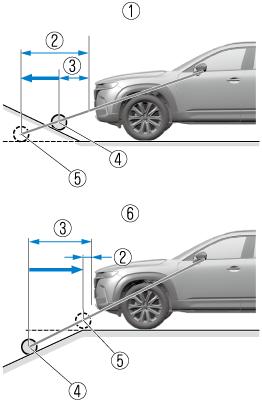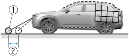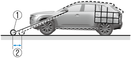 Étant donné que les lignes de guidage d’extrémité avant du véhicule ou les lignes de guidage de distance (caméra arrière) sont affichées sur la base d'une surface plane, la distance à l'objet en trois dimensions affichée sur l'écran est différente de la distance réelle.