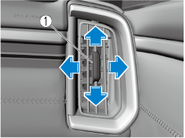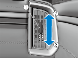 La figure indique la bouche d’air sur le côté gauche du combiné d'instruments. Le sens de fonctionnement de la bouche d’air du côté droit du combiné d'instruments est symétrique à celui de la bouche d’air du côté gauche.