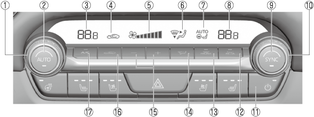 L'affichage diffère selon les commandes de climatisation, ou si le véhicule est équipé ou non du chauffage de siège, de la ventilation de siège et du chauffage de volant.