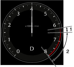 Lorsque l'aiguille du compte-tours entre dans la ZONE RAYÉE, cela indique au conducteur qu'il faut changer de vitesse avant d'arriver à la ZONE ROUGE.