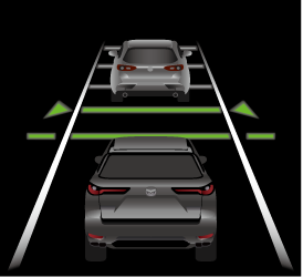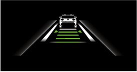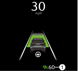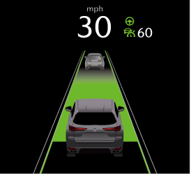 Lorsque vous roulez près du centre de la voie et que les lignes blanches (jaunes) des deux côtés sont clairement détectées, ou qu'un véhicule est clairement détecté devant votre véhicule et que la vitesse est inférieure à environ 56 km/h (35 mi/h).