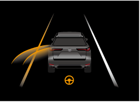 En outre, si la possibilité d'une sortie de route augmente, un affichage sur l'écran et un signal sonore avertissent le conducteur du danger. Actionner le volant en fonction de l'affichage de l'écran.