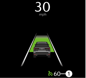 Accélérer le véhicule jusqu'à la vitesse souhaitée de 25 km/h (16 mi/h) ou plus (le réglage de vitesse minimale est de 30 km/h (19 mi/h)).