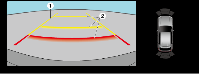 Lignes de guidage de largeur du véhicule (jaunes) |