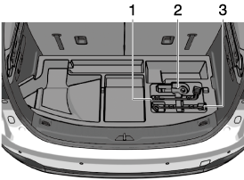Retirer l'anneau d'immobilisation, le levier de cric et le démonte-roue ou équivalent du compartiment à bagages.