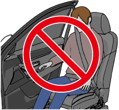 Lorsqu'un bébé ou un petit enfant s'assied sur le siège du passager avant, l'augmentation du poids total assis sur le siège du passager avant est dangereuse. Les capteurs de poids du siège du passager avant détecteront le poids total assis accru, ce qui pourrait causer le déploiement inattendu des coussins d'air avant et latéral, les coussins d'air pour les genoux et le système de dispositif de prétension de ceinture de sécurité du passager avant en cas d'accident et de graves blessures. L'augmentation du poids total assis sur le siège du passager avant peut entraîner le déploiement des coussins d'air avant, latéral et pour genoux du passager avant et du dispositif de prétension de ceinture de sécurité en cas d'accident dans les conditions suivantes, par exemple.