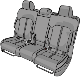 Les ancrages inférieurs LATCH au centre du siège de la deuxième rangée sont beaucoup plus séparés que les ensembles d'ancrages inférieurs LATCH pour système de dispositif de sécurité pour enfants aux autres positions. Les systèmes de dispositif de sécurité pour enfants avec des fixations LATCH rigides ne peuvent pas être installés au centre du siège arrière. Certains systèmes de dispositif de sécurité pour enfants LATCH peuvent être placés en position centrale et atteindront les ancrages inférieurs LATCH les plus proches qui sont espacés de 500 mm (19,7 po.). Les systèmes de dispositif de sécurité pour enfants compatibles avec les ancrages LATCH (avec fixations sur la ceinture) peuvent être utilisés à cette position seulement si les instructions du fabricant accompagnant le système de dispositif de sécurité pour enfants indiquent que le système de dispositif de sécurité pour enfants peut être installé à l'aide d'ancrages inférieurs LATCH qui sont séparés de 500 mm (19,7 po.). Ne pas attacher deux systèmes de dispositif de sécurité pour enfants au même ancrage inférieur LATCH. Si un système de dispositif de sécurité pour enfants est équipé d'une sangle d'ancrage, elle doit aussi être utilisée pour une sécurité optimale de l'enfant.