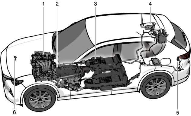 Le moteur transmet la puissance motrice aux roues en utilisant l'énergie électrique de la batterie haute tension.