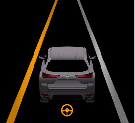 En outre, si la possibilité d'une sortie de route augmente, un affichage sur l'écran et un signal sonore avertissent le conducteur du danger. Actionner le volant en fonction de l'affichage de l'écran.