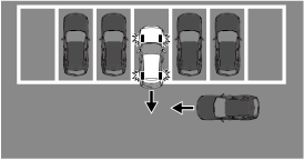 La fonction de circulation transversale à l'arrière est conçue pour éviter la collision et réduire les dommages en cas de collision avec un véhicule approchant par les côtés arrière.