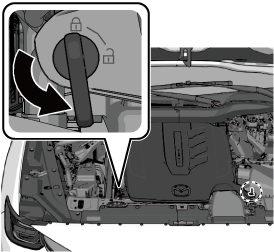 Retirer la sangle lors de l’ouverture/fermeture du capot. Si le capot est ouvert/fermé alors que la sangle est engagée, la sangle ou le crochet peuvent être endommagés.