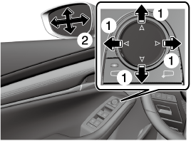 Appuyer sur le bouton de sélection situé sur le côté du rétroviseur extérieur à régler.