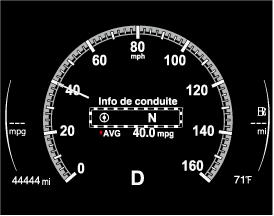 La direction dans laquelle le véhicule se déplace est affichée selon une des huit directions durant la conduite.