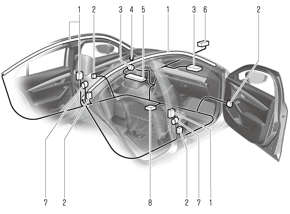 Capteur de capotage, détecteurs de choc, et module de diagnostic (unité SAS)