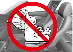 Le véhicule est équipé de capteurs de poids du siège du passager avant. Même avec les capteurs de poids du siège du passager avant, si vous devez utiliser le siège du passager avant pour y faire asseoir un enfant, le fait d'utiliser un système de dispositif de sécurité pour enfants sur le siège du passager avant dans les conditions suivantes augmente le danger du déploiement du coussin d'air côté passager avant, ce qui présente un risque sérieux de blessures graves ou mortelles à l'enfant.