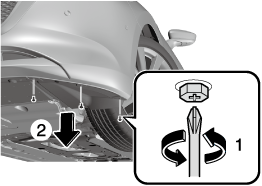 5. Tourner la vis dans le sens contraire des aiguilles d'une montre et la retirer, puis tirer partiellement le garde-boue.