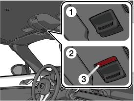 Si le témoin rouge s'allume sur le bouton de déblocage, le toit convertible n'est pas verrouillé. Après avoir verrouillé le toit convertible, s'assurer que le témoin rouge soit bien éteint.