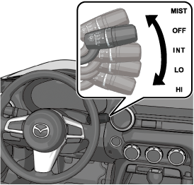 Lorsque l'interrupteur ou le levier est actionné, l'essuie-glace/lave-glace de pare-brise fonctionne.