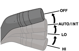 En position LO, les essuie-glaces de pare-brise fonctionnent à faible vitesse. En position HI, les essuie-glaces fonctionnent à grande vitesse.