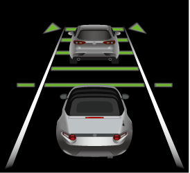 Si un véhicule qui vous précède est détecté alors que vous roulez à une vitesse constante, le système passe au contrôle d'espacement. L'indication du véhicule qui précède est affichée à l'écran pendant le contrôle de l’espacement.
