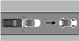 Si une collision se produit au point que les coussins d'air se déploient pendant la conduite, les feux de détresse clignotent pour alerter les véhicules environnants et les freins sont commandés pour réduire les dommages en cas de collision avec un obstacle ou un autre objet.