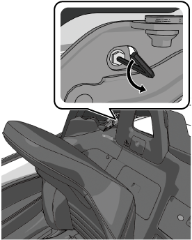 Tourner la clé hexagonale (petite) et l'engrenage (boîte à outils) dans le sens inverse des aiguilles d'une montre et engager le crochet sur côté de la carrosserie du véhicule.
