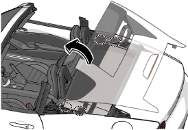 Cette procédure décrit la fermeture manuelle du toit comme mesure d'urgence. Après la fermeture manuelle du toit, le fonctionnement électrique est impossible jusqu'à ce que le système soit restauré par un concessionnaire agréé Mazda.