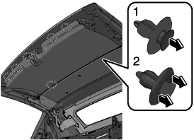 Ne pas tenter de soulever le toit arrière en forçant. Soulever le toit arrière de force sans le déverrouiller pourrait endommager les pièces du véhicule.