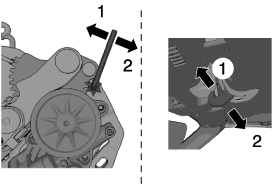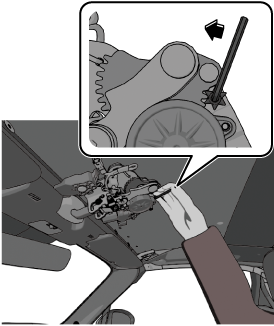 Insérer la branche courte de la clé hexagonale en L (large) dans le boulon du support de moteur.