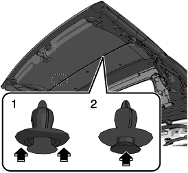 Les fixations aux cinq emplacements à l'avant du pavillon ne sont pas serrées. Veiller à ne pas perdre les fixations car elles seront requises pour l'entretien nécessaire par un concessionnaire agréé Mazda.