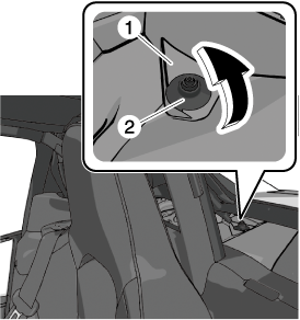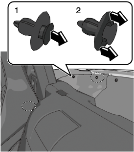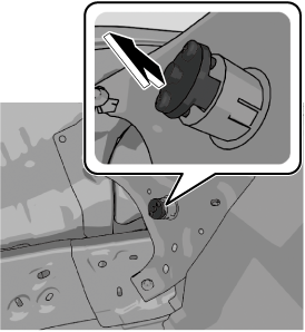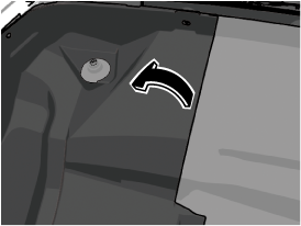 Appuyer le bouchon en caoutchouc à travers le couvercle sur le côté droit du véhicule tout en soulevant légèrement le couvercle vers le haut.