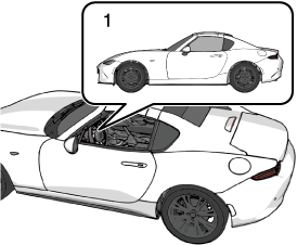 Ne pas ouvrir le coffre à cette étape. Si le coffre est ouvert avant que le toit arrière soit complètement fermé, le coffre peut entrer en contact avec le toit arrière et l'endommager ou être rayé.