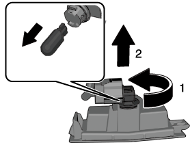 Insérer le tournevis par le côté gauche (appuyer fortement) et déplacer la pointe du tournevis vers le bas pour retirer l'unité d'éclairage.
