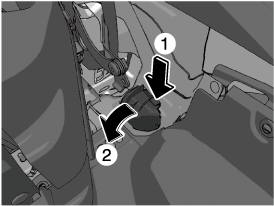 En installant le filtre d'écoulement, s'assurer que celui-ci est fermement fixé à son emplacement prévu en appuyant jusqu'à ce que la languette s'enclenche. De l'eau risque d'entrer dans le véhicule si le filtre d'écoulement n'est pas fermement fixé à son emplacement prévu.