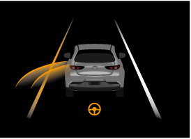 L’aide au maintien sur la route fonctionne pour aider à manœuvrer le volant lorsque toutes les conditions suivantes sont réunies et que le système détecte que votre véhicule peut dévier de la route.