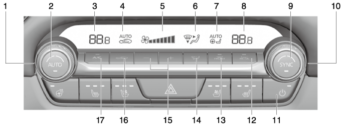 L’affichage diffère selon les commandes de climatisation, ou selon si le véhicule est équipé ou non du chauffage des sièges, de la ventilation des sièges et du volant chauffant.