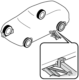 Lorsque le véhicule est monté sur un cric, toujours placer le levier sélecteur en position P, serrer le frein de stationnement et placer des cales de roue à la position diagonalement opposée au cric.