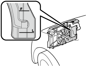 Si le niveau se trouve au niveau ou à proximité du repère L, ajouter suffisamment de liquide de refroidissement spécifié dans le réservoir de liquide de refroidissement pour la protection contre le gel et la corrosion et porter le niveau jusqu'au repère F.
